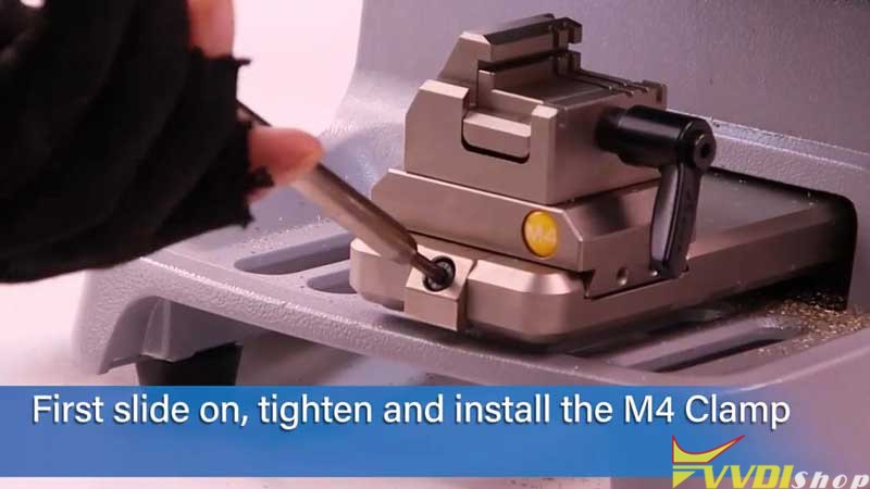 Next step, install the blank key to be cut on clamp.