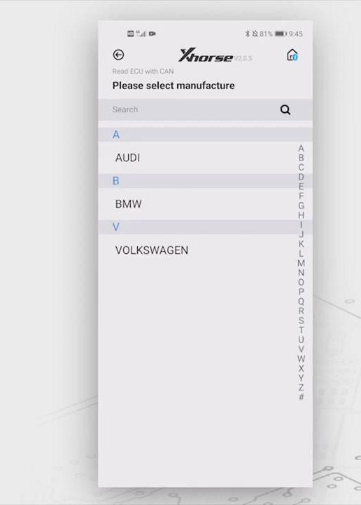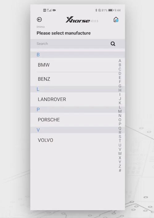 Now, click “Immo” button, then we can see it supports several cars like BMW, Benz, Land Rover, Porsche and Volvo.