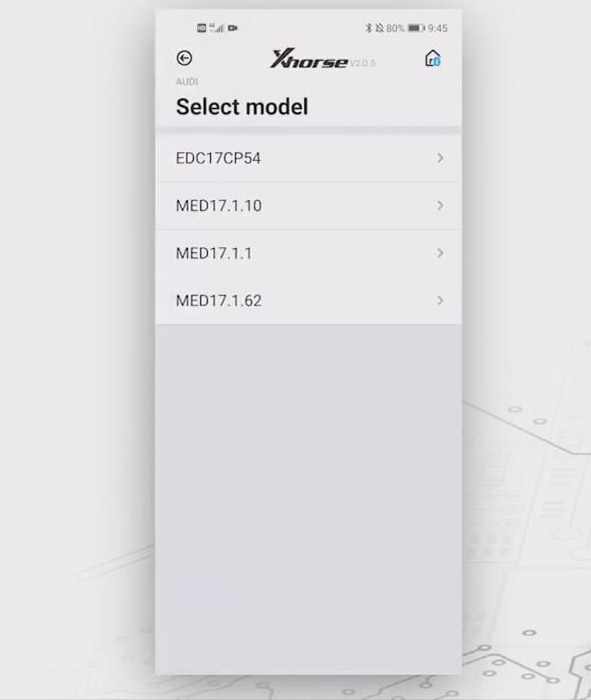 Select “AUDI”>>“AUDI” again>>“EDC17CP54”, then the info. of the adapter and the connection diagram can be seen.