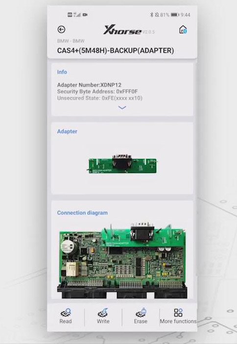 Let’s choose “CAS4+(5M48H)-BACK(ADAPTER)”, we’ll see the info. about the operations, namely, which adapters you should use and the connection diagram, usually you need to clip the adapter to the module.