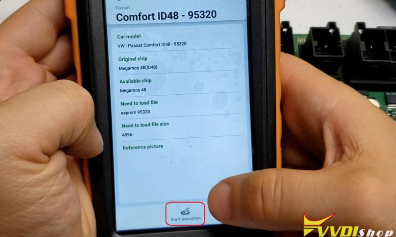 Special function >> Immo data tool >> Europe >> VW >> Passat >> Comfort ID48 – 95320 >> Start execution >> Load EEPROM file